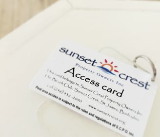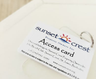 An access card is required to open the blue gates of the beach club (see the video above). This card is attached to the master key set you'll find inside of your studio or cottage. Upon departure, the club card should remain on the master key set (as it was found). A rush replacement fee of BBD200 (US100) applies if the card isn't in the studio or cottage on departure (mailing back isn't an option as we'll need it within 24 hours).